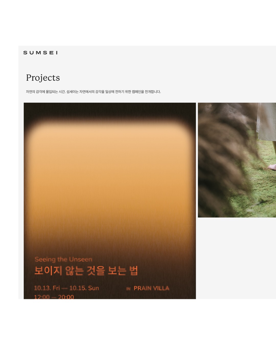 We feel calm and relaxed when facing massive nature in eyes. The day becomes more focused and balanced when we touch the ground earth with our foot, sense the gentle wind with our hand, or smell a glimpse of rain in the air. Nature has a quiet power to center the mind and restore focus. We believe that sharing these kind of sensory experience can create meaningful moments in the midst of daily life. The experience was inspired by sensory impressions found in nature—such as a gentle breeze, swaying trees, subtle fragrance, and the soft sounds of the outdoors. Full-size image blocks were used to create a vivid sense of presence, while slow and spacious motion was added to express a feeling of ease and relaxation.